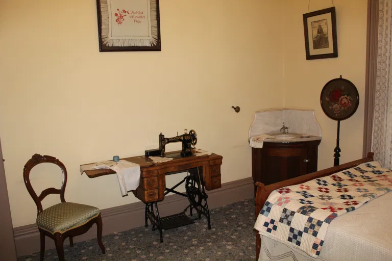 The Sewing Room was refurnished and reopened in May, 2019 after being closed for over a decade and being used as storage for miscellaneous furniture and objects. The room is in the Inventory after Annie’s death as “Sewing Room” and was furnished as a bedroom but did not contain a sewing machine...